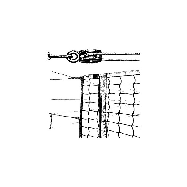 Tento patentovaný vývoj Huck je navíc vybaven na obou koncích kevlarovým napínacím lanem s vodicí kladkou. Díky tomu lze síť napnout absolutně rovnoměrně a tvrdě. Dále je možné dodatečně přesné seřízení sítě na značkách hřiště ve vypnutém stavu.