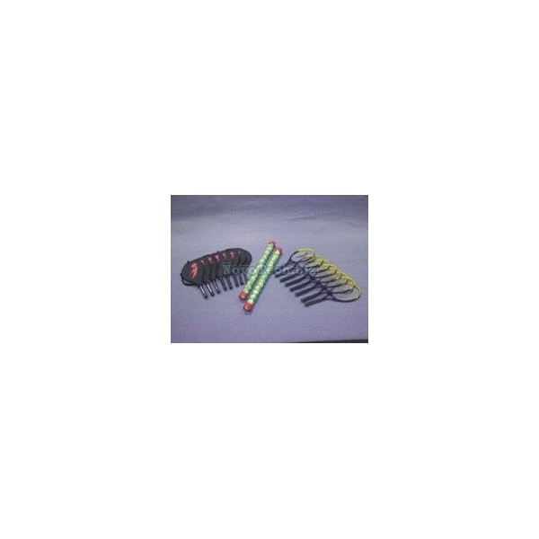 Sada obsahuje 16 ks 3/4 dětských raket ve velikostech 53, 58 a 63 cm (včetně obalu) a 32 ks měkkých tréninkových míčů.