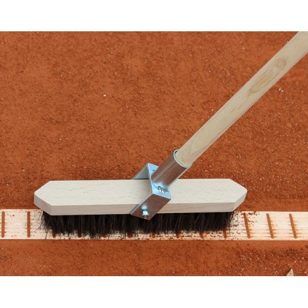 Pevný kartáč, široký 4 cm, přírodní materiál ARENGA. Kloubové upevnění umožňuje optimální sklon a dobré vedení po čáře. Lehká dřevěná násada.. Doporučený pro běžnou úpravu a důkladné čištění umělých čar GENIALA po hře i při pravidelné údržbě dvorce. Vhodný pro čáry široké 4 a 5 cm.