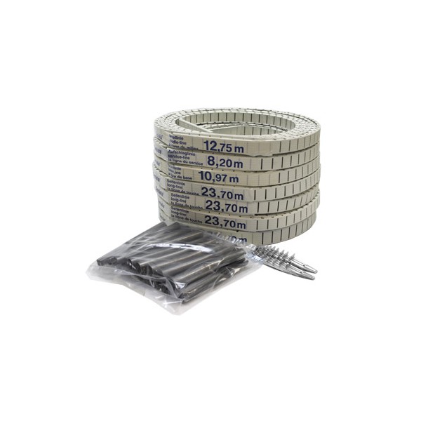 Umělé tenisové čáry GENIALA se vyznačují robustním profilem z tvrzeného PVC se zesíleným ukončením. Dodávka obsahuje kompletní sadu již přesně naměřených čar na hřiště pro čtyřhru. Všechny čáry jsou již z výroby osazeny nerezovými kotevními prvky. Praktický systém skrytého spodního ukotvení umožňuje plynulé výškové i stranové nastavení čáry. Čáry jsou stabilní a odolné vůči mrazu!