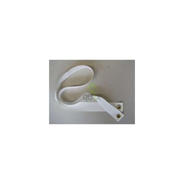 Regulační pás z bílé, nylonové povrstvené tkaniny.