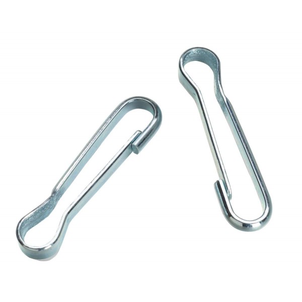 Poniklovaná karabina o velikosti 60 mm sloužící k upínání tenisových pohledových plachet a zástěn na ploty podél tenisových kurtů